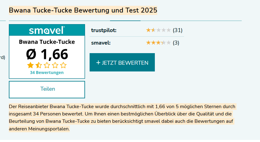 Plattform-Bewertungen Bwana Tucke-Tucke