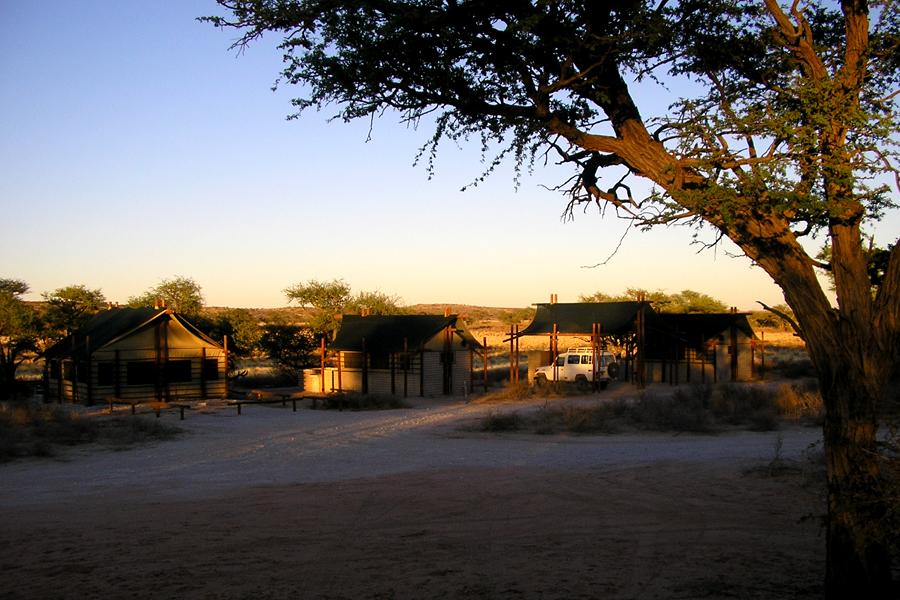 Entwicklung wird seit 2015 20 km von Mata Mata entfernt in den Dünen unter Kameldornbäumen in der Nähe des Wasserloches Craig Lockheart als Luxuscampingplatz geplant. Noch nicht zu sehen.