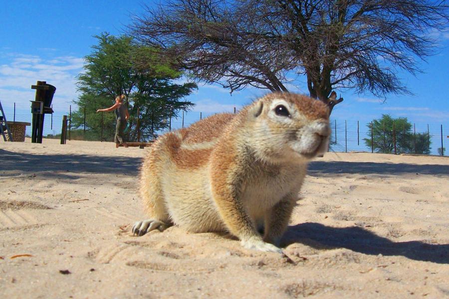 Wasserloch: Das Wasserloch ist zwar etwas abgesetzt von den Unterkünften, wird aber von Oryx und Kuhantilopen regelmäßig frequentiert. Die Löwen kommen hier gerne ins Camp und löschen ihren Durst an der Vogeltränke am Haus des Rangers. Besonders aufpassen,wenn man sich an der gemeinsamen Feuerstelle aufhält.